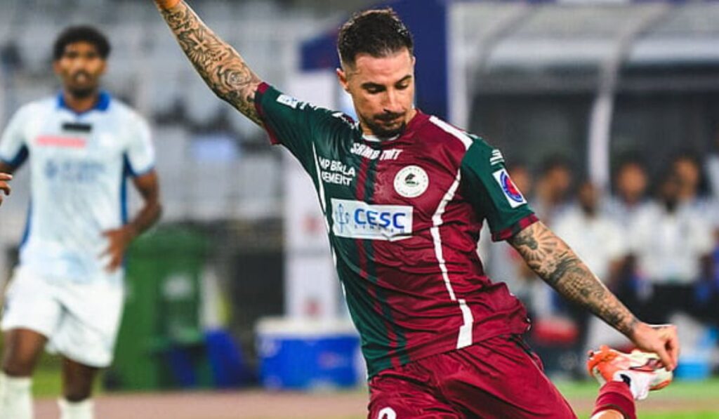 Mohun Bagan Super Giant kicked off the 2025-26 ISL season with a clinical performance. Thrashing Kerala Blasters with securing a 2-0 win at the Salt Lake Stadium. The match ignited early on when Dimitri Petratos unleashed a stinging shot from the left, which was deflected wide for a corner. The Australian import then swung a dangerous ball into the box however, no one could connect, allowing the Blasters to clear the danger quickly. Despite that initial clearance, the pressure continued to build until the deadlock broke in spectacular fashion. History was made when Jamie Maclaren etched his name on the opening book at just 36 minutes by scoring the first goal of the new campaign. The move was orchestrated by Petratos, who found Maclaren with a visionary pass. Without hesitation, the forward drove the ball past Suresh Singh Wangjam to spark wild celebrations among the home fans. Following the opening goal, Kerala Blasters found themselves pinned on the back foot and appeared to lack the hunger to find an equalizer. They struggled significantly, finishing the half with zero shots on target and inferior possession, leaving coach David Catala with a massive mountain to climb at the interval. Seeking a spark after the drinks break, Catala introduced Sreekuttan to replace Bartomeu. In response, MBSG opted for a double change of their own, bringing on Tom Aldred and Sahal Abdul Samad to replace Petratos and Mehtab Singh to maintain their grip on the contest. As the clock ticked deep into stoppage time, the Mariners’ persistence finally reaped dividends. In the 97th minute, a perfectly placed set-piece found Tom Aldred, who ghosted past a sleeping defense to bury a clinical header into the back of the net.