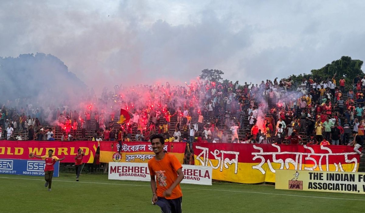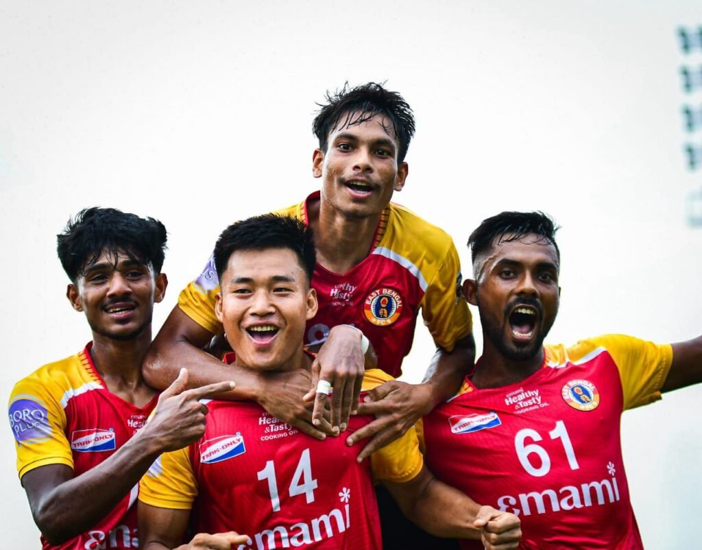 The post-match jubilation of the fans may indicate that the red-and-gold brigade grabbed the title effortlessly. The first 45 minutes looked alike. East Bengal had superiority. They created opportunities. Their ISL-experienced footballers, like David, PV Vishnu, and Sayan Bannerjee, missed a series of sitters before David drew first blood in the 43rd minute. United custodian Raunak Ghosh was brilliant, saving his team from conceding a couple of goals in the first session.